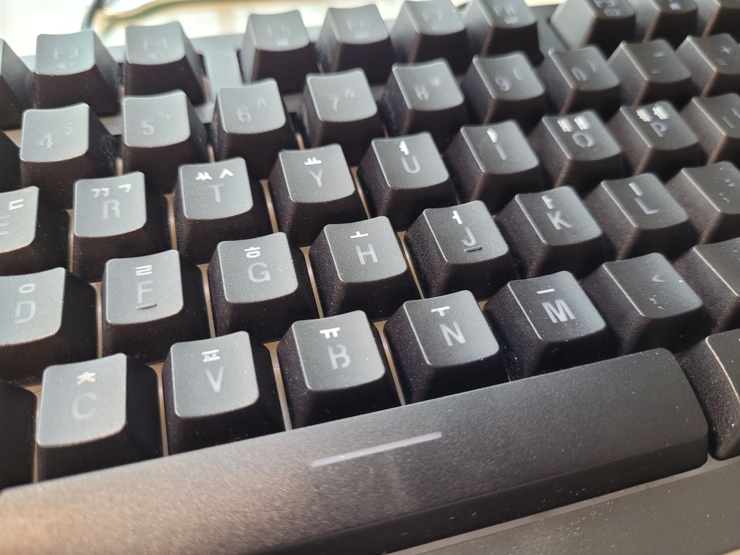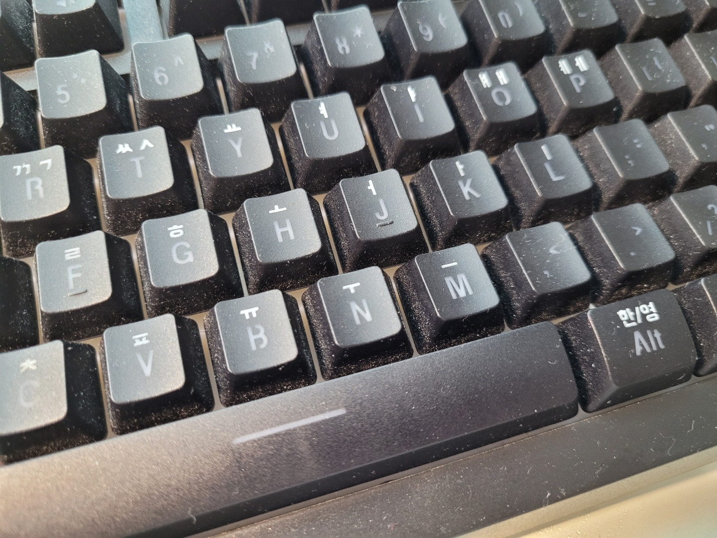 사이사이에 먼지가 쌓인 키보드...