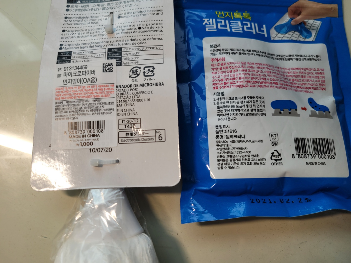 "마이크로파이버 먼지떨이(OA용)", "젤리크리너" 입니다.