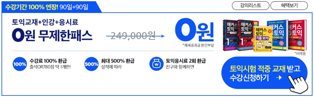 해커스 토익 0원 무제한패스 환급반에 대해 글을 써보려 합니다.