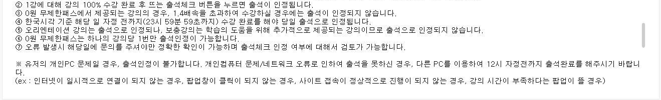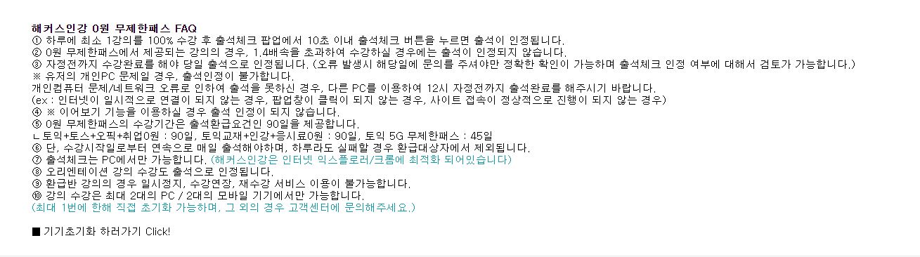 + 출석표의 하단을 보시면 <해커스인강 0원 무제한패스 FAQ>가 있습니다. 참고하세요.